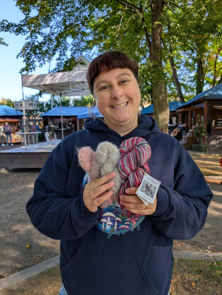Femme créative et passionnée qui façonne avec cœur des pièces uniques en laine et en tissu.
